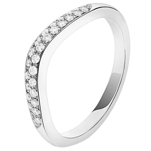 ストレートなネーミングのマリー・ミーシリーズ。しっかりとした建築的なデザインが特徴のシリーズです。純粋さと大胆さをイメージさせるスクエアなアームは、2人の気持ちのゆるぎなさを現しています。等間隔に埋め込まれたダイヤは、あらゆる角度から光を集めるようセッティング。手元でキラキラと輝くでしょう。高さがないので、引っかかりにくいのも普段使いしやすいポイントです。