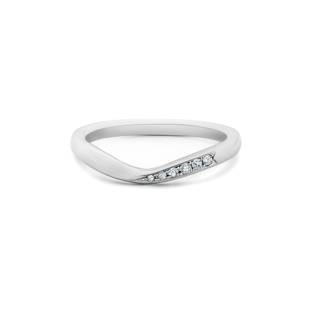 U字のリングが、ボリューム感を演出してくれます。そのため、1本でも十分に存在感を出せる、そんなリングのデザインに仕上がっています。 ダイヤモンドが逆三角形上にセッティングされていて、モダンな印象を感じられるでしょう。 素材にはプラチナが使用され、 ダイヤモンドはラウンドブリリアントというカッティング方法が用いられており、見た人が美しいという印象を得るでしょう。 柔らかいウェーブが特徴のデザインとなっています。