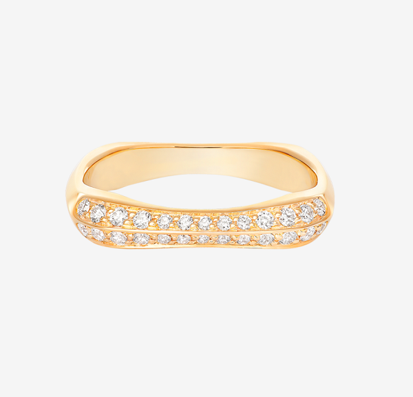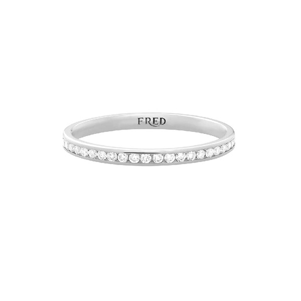 ブリリアントカットのホワイトダイヤモンドが24粒も惜しみなくあしらわれたウェディングリングです。 24粒のダイヤモンドが輝きを放ち、存在感を出してくれます。 ダイヤモンドが均等に指輪を一周して並べられているため、 リング幅2mmという華奢で細身なデザインにも関わらず、 指先を華やかに明るくしてくれます。 素材はプラチナ製です。 シンプルで服装を問わないデザインは、フレッドのロングセラーとして輝き続けています。