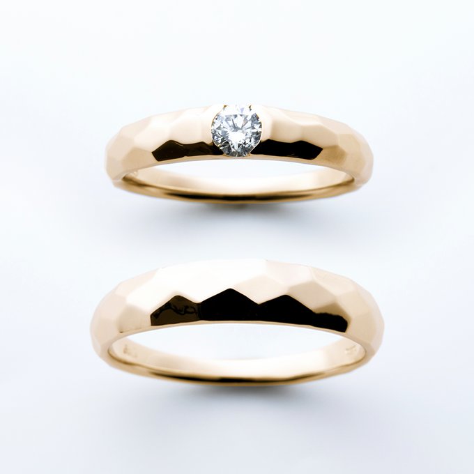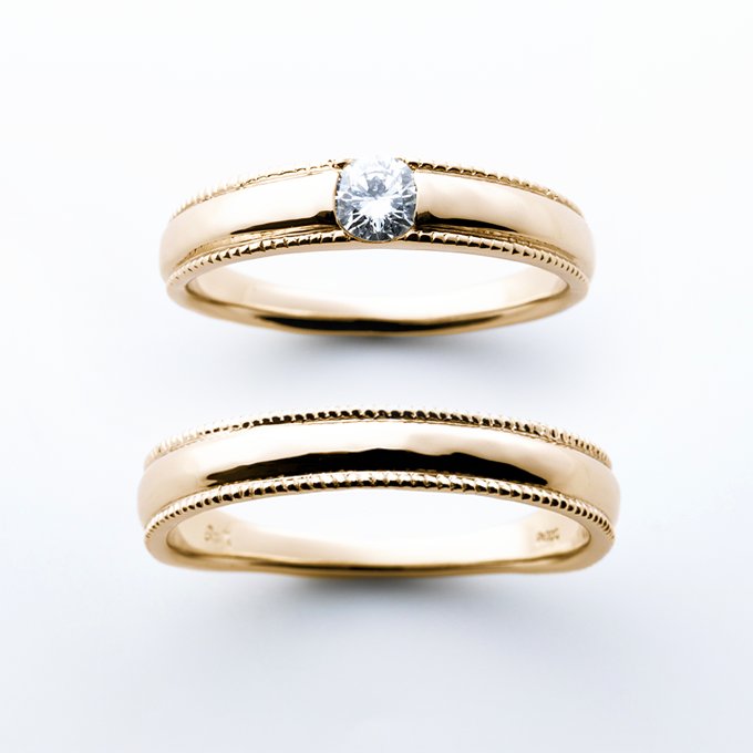 シャンパンゴールドを思わせるような淡く繊細な色合いは、女性の指元に可愛らしくて上品な印象を演出します。耐久性も上がることから、結婚指輪にふさわしい素材と言えるでしょう。