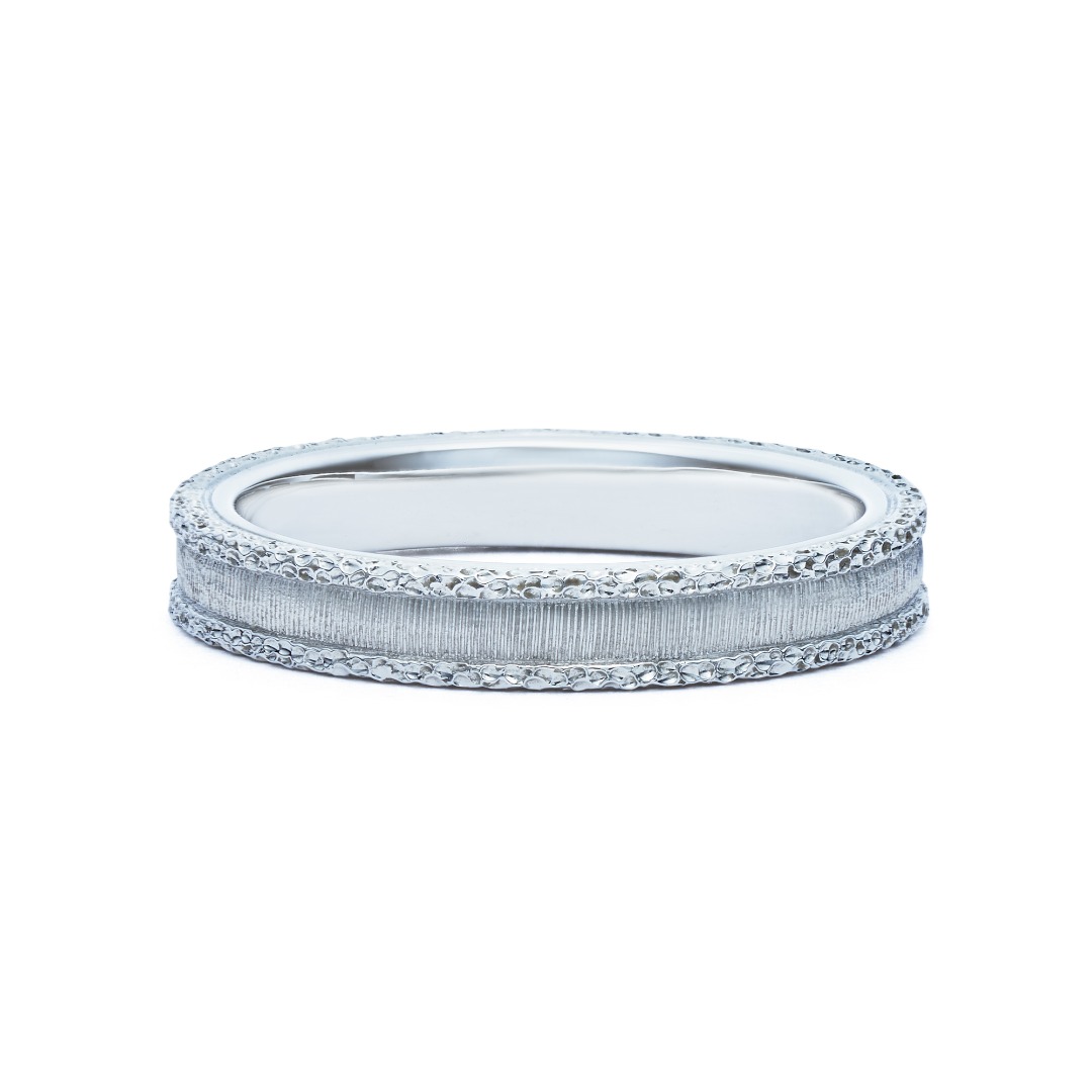 手彫りが施された結婚指輪です。表現されているのは絹。繊細で和を感じさせるデザインは、男性でも女性でも身に付けやすいデザイン。着け心地も良いと評判で、和光の結婚指輪のなかでもロングセラーを誇ります。人とは少し違った趣きの結婚指輪を探している方、着物を良く着る方におすすめのデザインです。