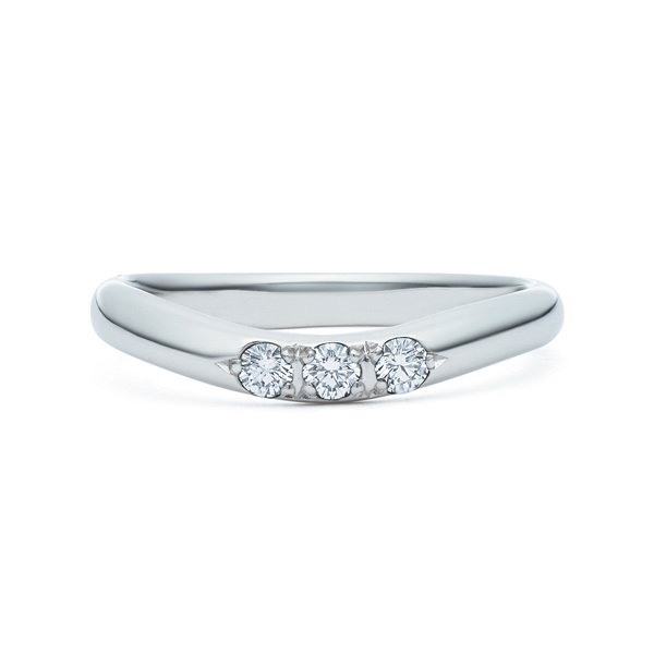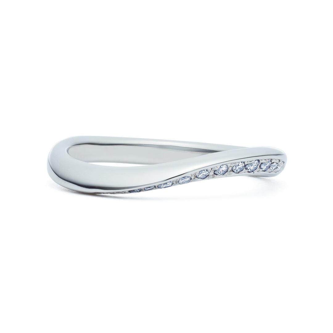 ウェーブしたアームの片側にだけ、ダイヤモンドが埋め込まれたデザインです。その日の気分で指輪を付ける方向を変えることで、違った印象をもたせられます。かすかな変化で生活に彩りを加えられるでしょう。